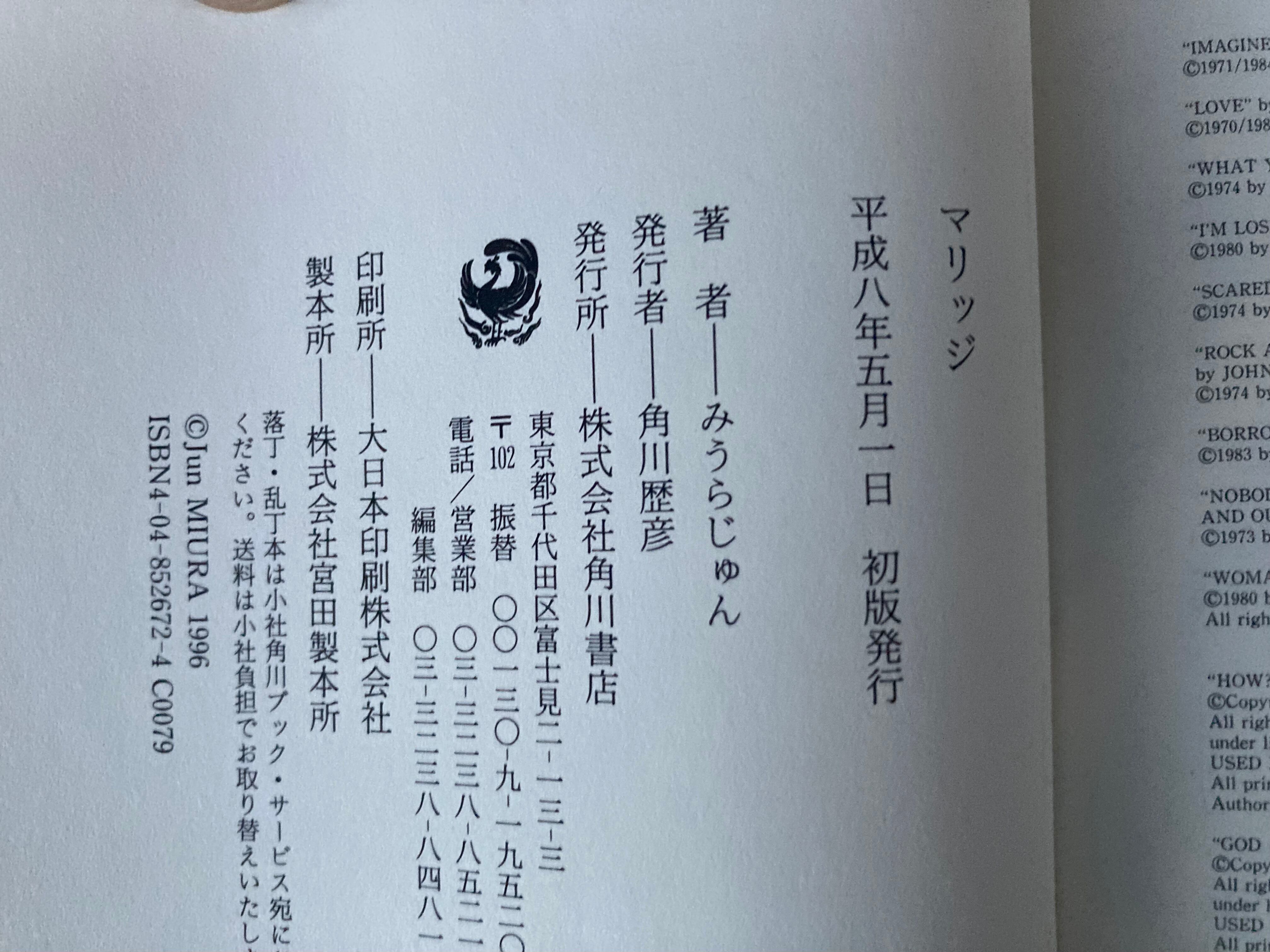 添付写真のとおり「マリッジ」のみ初版、他2冊は第二版。